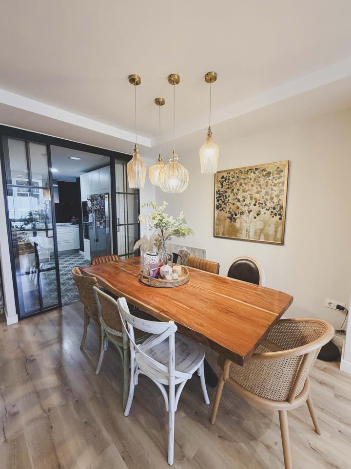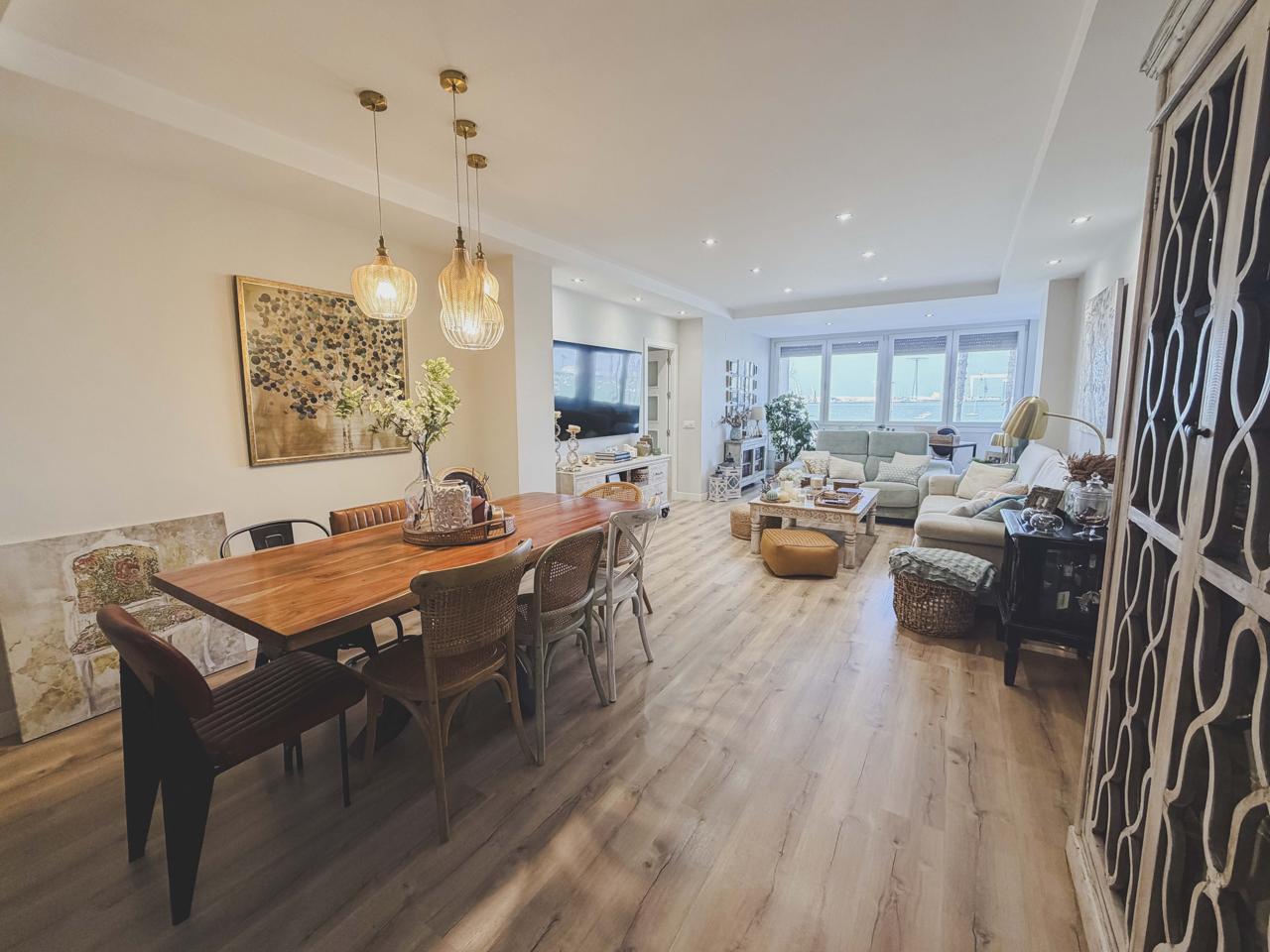 – Un espacio abierto entre cocina, comedor, salón y ventanal a la bahía.